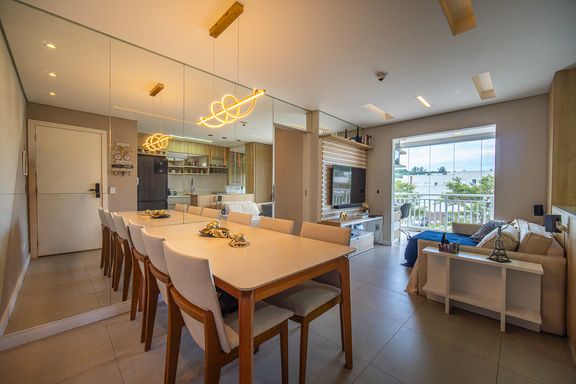 Localizado no km 21 da Rodovia Raposo Tavares, o Condomínio Harmonia é uma excelente opção para quem busca conforto e praticidade na Granja Viana. Este lindo apartamento de 70m², com dois dormitórios e sala estendida, é a combinação perfeita de funcionalidade e elegância. Ao entrar no apartamento, você se depara com um espelho que cobre toda a parede da sala de jantar, criando uma sensação de amplitude e luminosidade. Este detalhe arquitetônico não só expande visualmente o espaço, mas também acrescenta um toque moderno e sofisticado ao ambiente. A sala de TV, equipada com um rack e sofá, é um local ideal para momentos de relaxamento e entretenimento, proporcionando um ambiente arejado e claro. A cozinha é um dos pontos altos do imóvel, completa com muitos armários planejados que oferecem bastante espaço para armazenamento. Equipamentos de alta qualidade, como o cooktop, forno e coifa, tornam a cozinha um local funcional e prático para o dia a dia. A pia de granito branco ilumina o ambiente, dando uma sensação de limpeza e amplitude. A área de serviços, também equipada com bancada de granito branco e armários planejados, garante praticidade e organização nas tarefas domésticas. A varanda com fechamento de vidro é um espaço adicional que pode ser utilizado para relaxamento ou como um ambiente de convivência, permitindo que os moradores aproveitem a vista e a ventilação natural. Este é um diferencial que torna o apartamento ainda mais agradável e versátil. Os dormitórios são bem distribuídos, com destaque para a suíte principal, que é repleta de armários planejados, proporcionando organização e praticidade. O banheiro da suíte, assim como o social, está equipado com box de vidro, pia em granito e armário planejado, combinando funcionalidade com um design elegante e moderno. O Condomínio oferece uma variedade de opções de lazer para seus moradores. A piscina é perfeita para os dias ensolarados. A academia, equipada com os mais modernos aparelhos, atende aos que buscam manter a forma e cuidar da saúde sem precisar sair de casa. O salão de festas é o local ideal para comemorações e eventos especiais, enquanto a brinquedoteca garante a diversão das crianças. O espaço pet é um diferencial para os amantes de animais, oferecendo comodidade e praticidade. Além disso, o minimercado dentro do condomínio facilita a vida dos moradores, proporcionando acesso a itens essenciais sem que precisem sair de casa. As churrasqueiras são ideais para confraternizações, tornando os momentos de lazer ainda mais especiais. O Condominio disponibilizava vagas de garagem para visitantes Portaria 24 Horas e sistemas de monitoramento. Localização privilegiada, ao lado do rodoanel Mario Covas, bem próximo ao parque Jequitibá, o maior parque de natureza preservada da américa latina. Próximos aos Shopping Granja Viana - Open Mall The Square, Diversas opções de comércios, supermercados como San´s Club - Atacadão - Giga - Oba Hortifruti