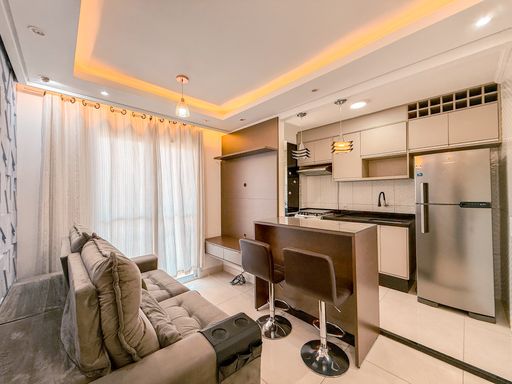 Condominio Grand Club Cotia - Localizado no km 30 Raposo Tavares. O imóvel é composto por sala de estar mobiliada, com estante, rack e sofá, integrada à sala de jantar, que conta com mesa de tampo giratório e cadeiras, proporcionando praticidade e conforto no dia a dia. Dispõe de dois dormitórios, sendo um com armário planejado e cama box de casal, e o segundo com móveis planejados para solteiro, atendendo perfeitamente diferentes perfis de moradores. A cozinha é funcional e bem equipada, com armários planejados, fogão, forno elétrico e geladeira. A área de serviço conta com armário suspenso, otimizando o espaço. O banheiro possui box de vidro e gabinete na pia, oferecendo praticidade e bom acabamento. Para completar, o imóvel dispõe de 1 vaga de estacionamento rotativo, em condomínio organizado e tranquilo. Grand Club Cotia Localizado na altura do km 30 da Rodovia Raposo Tavares, o Grand Club Cotia está próximo dos principais colégios da região, supermercados, além de atrações como o Thermas da Mata e o Animália Park, oferecendo praticidade para o dia a dia e fácil acesso ao comércio e serviços de Cotia. O condomínio foi projetado para proporcionar conforto, funcionalidade e qualidade de vida. As plantas inteligentes favorecem a entrada de luz natural e a boa circulação dos ambientes, criando espaços aconchegantes para o convívio. O destaque fica para os terraços, pensados para serem uma extensão do lazer dentro do apartamento. Características do empreendimento: - Apartamentos de 1 e 2 dormitórios; - Áreas privativas de 31,06 m², 43,05 m² e 46,32 m²; - 1 vaga de garagem; - Total de 198 unidades; - Piscina adulto; - Piscina infantil; - Solarium; - Churrasqueiras; - Espaço gourmet; - Salão de festas; - Praça de festas; - Mini golf; - Quadra recreativa; - Estação fitness; - Pet place; - Bicicletário; - Redário; - Bosque; Um condomínio completo, que reúne lazer, praticidade e localização estratégica, ideal para quem busca morar bem ou investir em Cotia.