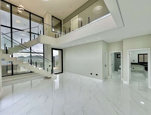 Esta casa Zero Km, moderna e clean, está situada em um charmoso condomínio de alto padrão no eixo da Estrada Fernando Nobre, na altura do km 28,5 da Raposo Tavares, ao lado do São Fernando Golf Club, do Colégio Sidarta e do Templo Zu Lai. Com arquitetura contemporânea, oferece ambientes amplos, iluminados e integrados, destacando-se pelo uso generoso de vidro, que garante luminosidade natural ao longo de todo o dia. A entrada é marcada por uma porta social equipada com fechadura eletrônica digital, reforçando praticidade e segurança. O living com pé-direito duplo acolhe três ambientes com elegância, combinando amplitude e conforto, sempre valorizados pelo piso em porcelanato. O lavabo complementa a área social. A cozinha com ilha central, tampos em granito preto e depurador em inox foi projetada para quem aprecia funcionalidade e estilo, conectando-se diretamente à varanda gourmet. Este espaço é um convite ao convívio, com bancada ampla, pia e churrasqueira, ideal para receber amigos e familiares com conforto. Nos fundos, a área de lazer conta com um amplo quintal gramado, perfeito para quem deseja construir uma piscina ou personalizar o espaço conforme o estilo de vida. Um corredor lateral possibilita acesso independente à área externa, oferecendo maior praticidade no dia a dia. A escada com guarda-corpo em vidro conduz ao piso superior, onde estão as quatro suítes, todas confortáveis e bem distribuídas. Três delas contam com closet e sacadas com guarda-corpo em vidro, enquanto toda a área íntima é revestida com piso vinílico, garantindo aconchego. Os banheiros são revestidos em porcelanato, com nichos nos boxes, cubas sobrepostas e torneiras monocomando. Na suíte master, o banheiro oferece duas duchas, criando um ambiente ainda mais confortável. A casa conta com iluminação completa em LED e hidráulica preparada para receber aquecimento central de água. A garagem acomoda duas vagas cobertas e mais duas descobertas, somando excelente praticidade. O Condomínio Quinta de São Fernando oferece segurança reforçada, controle de acesso, ronda e monitoramento por câmeras 24 horas. Sua localização estratégica permite fácil acesso à região de Alphaville, Barueri, Castelo Branco e Rodoanel sem depender da Raposo Tavares. Rodeado por área verde, com construções modernas e de ótimo padrão, o condomínio proporciona tranquilidade, comodidade e qualidade de vida em um dos pontos mais desejados da região.