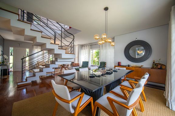 Localizada no Le Vivert Residencial, no Km 23 da Granja Viana, esta casa reúne sofisticação, conforto e integração com a natureza em um dos endereços mais valorizados da região. Situado no miolo da Granja, em rua tranquila e sem saída, o condomínio oferece privacidade e segurança, além de fácil acesso à Rodovia Raposo Tavares e ampla infraestrutura de comércio, serviços, escolas renomadas e opções de lazer, tornando a experiência de morar aqui ainda mais completa. Implantada em um terreno de 457 m², com 240 m² de área privativa, a residência apresenta projeto arquitetônico que prioriza integração, funcionalidade e iluminação natural. São quatro dormitórios, todos suítes, garantindo conforto e privacidade para toda a família. A suíte master é um verdadeiro refúgio, com amplo closet e sauna privativa, criando um ambiente exclusivo de relaxamento. Ao todo, o imóvel conta com cinco banheiros, distribuídos de forma inteligente para atender às áreas social e íntima com praticidade. O living é espaçoso e integrado para três ambientes, com sala de estar, sala de jantar e sala de TV, além de lareira que traz aconchego aos momentos em família. A cozinha em conceito aberto possui armários planejados e acabamentos modernos, conectando-se harmoniosamente à área social. O imóvel dispõe ainda de escritório, lavabo, área de serviço reservada e água quente, agregando funcionalidade ao dia a dia. A área externa é um dos grandes destaques, com quintal agradável e espaço gourmet com churrasqueira, ideal para receber amigos e familiares em ocasiões especiais. A vista panorâmica complementa o cenário, proporcionando sensação de amplitude e contato com o verde. A garagem comporta quatro veículos, sendo duas vagas cobertas. O Residencial Le Vivert é um condomínio fechado exclusivo, composto por apenas nove casas de alto padrão, o que garante ambiente seleto e atmosfera acolhedora. A localização estratégica oferece proximidade aos colégios Anglo, Objetivo e Rio Branco, além de supermercados, farmácias, postos de gasolina e diversos serviços. Está a poucos minutos dos shoppings Granja Viana e The Square, da padaria Dona Deôla e dos supermercados Pão de Açúcar, Sam’s Club e St Marche, com fácil acesso também a transporte público. Uma excelente oportunidade para quem busca morar com segurança, conforto e qualidade de vida na Granja Viana, em um condomínio exclusivo e cercado por natureza.