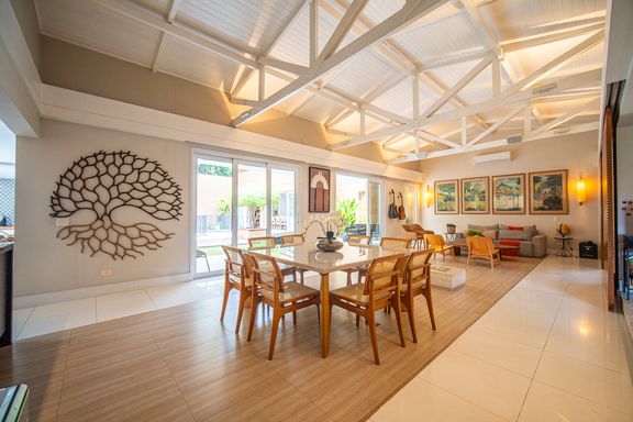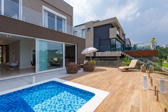 Esta casa à venda na Granja Viana está localizada em um dos condomínios de alto padrão mais desejados da região, oferecendo o equilíbrio ideal entre conforto, sofisticação, segurança e qualidade de vida. Inserida em um condomínio exclusivo, com ampla área verde e infraestrutura completa, a residência proporciona um estilo de viver moderno, funcional e integrado à natureza, sem abrir mão da praticidade do dia a dia. O imóvel possui ambientes amplos, bem distribuídos, iluminados naturalmente e com excelente ventilação, criando uma atmosfera acolhedora em todos os espaços. A área social é composta por salas em conceito aberto, perfeitamente integradas à área gourmet e à piscina, favorecendo a convivência e tornando o espaço ideal para receber amigos e familiares. A cozinha é espaçosa, funcional e equipada com armários planejados e fogão embutido, oferecendo praticidade e organização para a rotina da casa. Na área íntima, a casa conta com três dormitórios, todos suítes com varanda e persianas, garantindo conforto e privacidade. A suíte máster se destaca pelo alto padrão de acabamento, com banheira, pia dupla, duas duchas e ar-condicionado, proporcionando um verdadeiro ambiente de relaxamento. Os banheiros são modernos, bem distribuídos e atendem perfeitamente às necessidades do imóvel, incluindo banheiro de apoio à área de lazer. O lazer é um dos grandes diferenciais desta residência. A área gourmet é completa, equipada com churrasqueira, ilha com cooktop, coifa, pia e armários embutidos, conectando-se diretamente à piscina com vista privilegiada. A área externa ainda conta com banheiro de apoio, casa de máquinas e canil, além de um espaço agradável para desfrutar momentos ao ar livre. O imóvel dispõe também de uma sala gamer com banheiro e ar-condicionado, ideal para entretenimento, além de uma sala multifuncional privativa com ar-condicionado, perfeita para home office ou uso conforme a necessidade do morador. A lavanderia é coberta e há dependência de empregada, trazendo mais funcionalidade ao dia a dia. Entre os diferenciais técnicos, destacam-se o boiler solar com capacidade de 600 litros, que garante eficiência energética, e as esquadrias em PVC, que oferecem conforto térmico e acústico. O condomínio oferece segurança 24 horas com portaria e ronda armada, além de um clube completo com piscina adulto e infantil, quadras esportivas, academia, salão de festas, salão de jogos, playground e amplas áreas verdes preservadas. A localização é estratégica, com fácil acesso à Rodovia Raposo Tavares, proximidade aos shoppings Granja Viana e The Square, além de estar cercada por escolas renomadas, supermercados, restaurantes e serviços essenciais. Esta é uma excelente oportunidade para quem busca uma casa à venda na Granja Viana, em condomínio de alto padrão, com lazer completo, segurança e uma localização privilegiada, ideal para viver com conforto, tranquilidade e qualidade de vida.