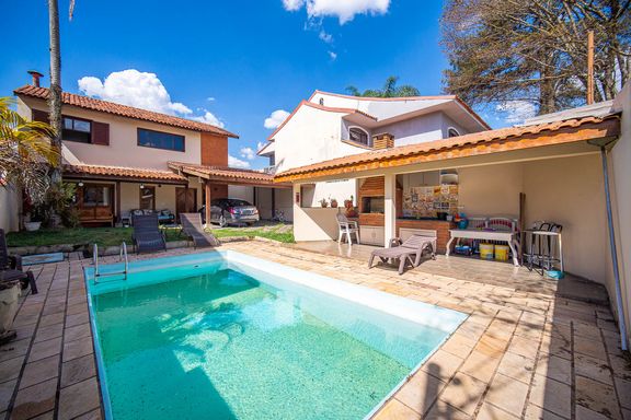 Este lindo sobrado está localizado em um dos condomínios mais familiares da Granja Viana, dentro do São Paulo II, e oferece segurança, conforto e uma estrutura de lazer completa. Situado ao final de uma rua tranquila, próximo ao cul-de-sac e ao bosque, o imóvel está em uma área privilegiada, cercado por preservação ambiental, proporcionando contato direto com a natureza e muita privacidade. A unidade foi ampliada, com fechamento dos corredores laterais, otimizando os espaço. A área social e íntima possuem piso de madeira, trazendo aconchego e sofisticação aos ambientes. O living espaçoso acomoda quatro ambientes integrados, incluindo uma lareira e um charmoso jardim de inverno, com uma grande claraboia que proporciona excelente iluminação natural. A varanda social é outro grande destaque, equipada com lareira e totalmente integrada ao espaço gourmet, que conta com churrasqueira e forno de pizza, ideal para momentos de confraternização com família e amigos. A piscina em alvenaria complementa a área de lazer, acompanhada por um vestiário completo e um depósito. O escritório, planejado com armários sob medida, tem acesso direto pelo hall social, oferecendo um espaço reservado e funcional para home office. A cozinha é ampla e prática, repleta de armários planejados e despensa, atendendo às necessidades do dia a dia. No piso superior, um hall íntimo com armários planejados conecta os dormitórios. São quatro quartos no total, sendo duas suítes com closet. A suíte master se destaca pelo seu amplo espaço, com closet Sr. e Sra., duas portas-balcão que dão acesso a um grande terraço voltado para a piscina, proporcionando uma vista incrível. Os banheiros são equipados com gabinetes e box de vidro, sendo que o da suíte master conta ainda com hidromassagem. O banheiro compartilhado pelos outros dois dormitórios possui duas cubas, oferecendo mais conforto e praticidade. A casa também dispõe de uma lavanderia espaçosa e muito bem iluminada, além de dependências de serviço completas, com quarto e banheiro. No terraço lateral superior, há ainda depósitos adicionais, garantindo espaço extra para armazenamento. O condomínio Carmel é um dos mais charmosos e tranquilos da região, composto por apenas 89 unidades, todas de alto padrão. Conta com segurança reforçada, pois possui duas portarias – a do São Paulo II e a própria do Carmel. Com um ambiente familiar e ideal para crianças, o condomínio oferece alamedas internas arborizadas e uma completa estrutura de lazer, incluindo clube com piscinas adulto e infantil, quadra de tênis, quadra poliesportiva e área gourmet. Além disso, a sede do condomínio conta com salão de festas, salão de jogos e até um mercadinho de autoatendimento para maior comodidade dos moradores. Com duas vagas de estacionamento, sendo uma coberta, este sobrado é uma excelente opção para quem busca qualidade de vida, segurança e lazer em um ambiente familiar e acolhedor. Agende sua visita e venha conhecer esse maravilhoso imóvel!