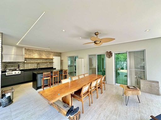 Esta casa moderna e integrada, localizada no renomado condomínio São Paulo II na Granja Viana, é uma oportunidade única para quem busca conforto, elegância e qualidade de vida. O condomínio São Paulo II é reconhecido como um dos maiores e mais urbanizados da região. Sua localização estratégica oferece fácil acesso às principais vias, garantindo mobilidade sem abrir mão da tranquilidade. A área é cercada por natureza, com bosques preservados, parques e uma infraestrutura completa de comércio, escolas e serviços essenciais. Ao adentrar o imóvel, a imponência da entrada social, com uma porta pivotante de madeira e fechadura eletrônica, já antecipa o padrão elevado da casa. O living integrado para cinco ambientes apresenta amplos espaços para sala de estar, TV, jantar e bar, todos com uma vista encantadora para o campo de golfe. O projeto de iluminação e gesso eleva ainda mais a sofisticação dos ambientes, que são revestidos com porcelanato de alta qualidade. A cozinha, totalmente integrada ao living, é um destaque à parte. Projetada para oferecer funcionalidade e estilo, conta com bancada, ilha central, cuba de inox e torneira gourmet. O espaço é ideal para quem gosta de receber, já que a integração com o salão gourmet e a área externa torna qualquer reunião especial. No piso superior, as três suítes foram pensadas para proporcionar máximo conforto. A suíte master é o ponto alto, com vista privilegiada, closet com claraboia e um banheiro espetacular, equipado com duas duchas de teto, pias duplas e uma hidromassagem envidraçada. No piso inferior, uma quarta suíte oferece versatilidade, ideal para hóspedes ou familiares que desejam maior independência. Além disso, o imóvel conta com um apartamento multiuso no piso inferior. Este espaço, com acesso interno e externo, é perfeito para home office, home theater, ou até mesmo como um ambiente independente para familiares. Com sala ampla, lavabo, suíte privativa e preparação para uma cozinha integrada, ele atende às mais diversas necessidades. A área externa possui piscina, com prainha, hidro para 5 pessoas e iluminação, é o cenário ideal para momentos inesquecíveis. O salão gourmet, integrado à piscina, possui churrasqueira, coifa e bancada. Tudo foi pensado para garantir segurança, com pisos antiderrapantes em toda a área externa. Viver no São Paulo II é sinônimo de tranquilidade e proteção. A portaria com controle de acesso rigoroso, circuito interno de TV e segurança armada 24 horas garante a paz dos moradores. O condomínio também oferece ambulância 24 horas sem custo adicional, um diferencial para quem valoriza um suporte eficiente em emergências. As opções de lazer do condomínio são completas e atendem todas as idades. O clube conta com quadras de tênis, poliesportiva e de futebol, além de pista de skate, parques infantis e trilhas em bosques preservados. Salão de festas, sala de jogos e convenções completam a estrutura, oferecendo um estilo de vida único e confortável.