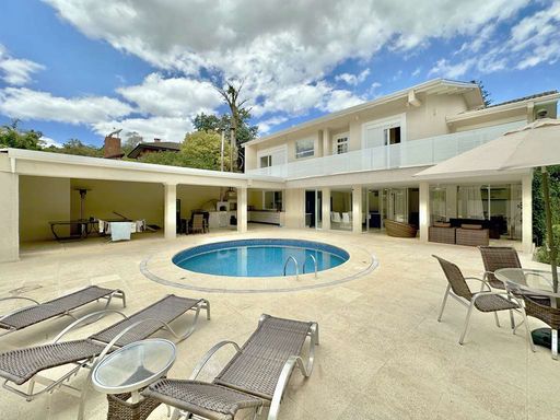 Linda residência envidraçada, avarandada e integrada à natureza, implantada em terreno generoso de 1.000 m², em rua tranquila e arborizada, dentro de condomínio fechado com controle de acesso, segurança e portaria 24 horas. Um imóvel pensado para morar, que une conforto, sofisticação e uma atmosfera acolhedora, onde o jardim com paisagismo formado envolve e invade os ambientes internos, criando uma sensação constante de bem-estar. A casa é ensolarada, extremamente arejada e iluminada, sugerindo uma decoração leve, minimalista e com toques de rusticidade, perfeita para receber amigos e familiares com conforto e elegância. Portas, janelas e esquadrias em PVC e vidro, com estrutura de aço e mecanismo alemão, garantem excelente vedação, conforto térmico e acústico. As janelas dos dormitórios possuem sistema duplo, com abertura total e persianas integradas. O projeto conta com acabamento de qualidade, pisos em tábuas largas nas áreas sociais, taquinhos de madeira nas áreas íntimas e porcelanato antiderrapante nas áreas externas. Projeto de gesso e iluminação valorizam cada ambiente, além de louças e metais de alto padrão. São quatro acessos independentes — social, lazer, garagem e serviço. A entrada social se dá por uma elegante porta de madeira, conduzindo ao hall com lavabo. A escada em alvenaria, revestida em madeira, leva ao piso superior, onde se encontra o hall íntimo e um charmoso mezanino com family room, ideal para home theater ou escritório, com guarda-corpo em vidro e metal. O imóvel dispõe de quatro suítes confortáveis, sendo duas com ar-condicionado e três com armários planejados. A suíte master se destaca pelo amplo closet planejado para senhor e senhora e pelo banheiro sofisticado, com acabamento em mármore, duas cubas, duas duchas, nichos, banco no box e hidromassagem. O living envidraçado comporta até seis ambientes integrados — estar, TV, lareira em canjiquinha, música, bar envidraçado e jantar — todos voltados para a natureza e para a varanda gourmet. Esta, por sua vez, é equipada com churrasqueira, forno de pizza à lenha e bancadas em granito, ideal para momentos de lazer. A copa-cozinha americana é funcional e elegante, repleta de armários planejados, despensa, duas cubas inox e balcão integrado à sala de jantar. Área de serviço ensolarada, lavanderia fechada, quarto e banheiro de serviço completam a funcionalidade da casa. Garagem para quatro veículos, sendo duas vagas cobertas, amplo pátio, portão automático, porteiro eletrônico e sistema de aquecimento central solar com cinco placas finalizam este imóvel único, localizado em um dos condomínios mais valorizados da Granja Viana.