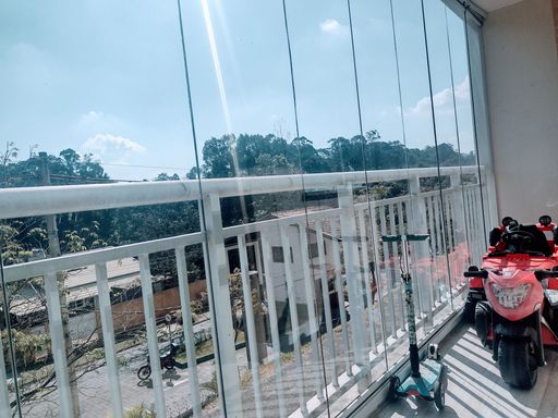 A varanda com fechamento de vidro é um espaço adicional que pode ser utilizado para relaxamento ou como um ambiente de convivência, permitindo que os moradores aproveitem a vista e a ventilação natural. Este é um diferencial que torna o apartamento ainda mais agradável e versátil.