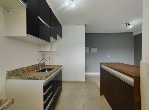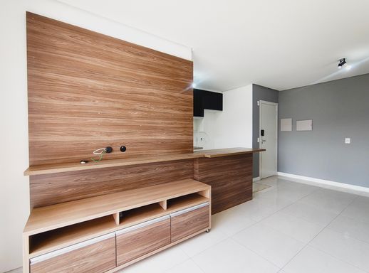 Este apartamento, com conceito aberto, moveis planejados fazem parte.