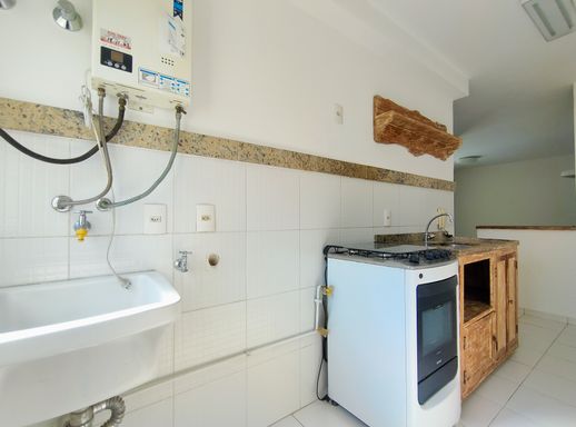 O conceito aberto da cozinha proporciona uma sensação de amplitude e torna a convivência ainda mais prazerosa. A cozinha um acabamento elegante ao ambiente com area de serviços integrada. Conta ainda com sistema de aquecimento a gás, promovendo mais conforto nas tarefas domésticas.