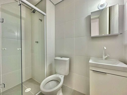 O apartamento conta com dois dormitórios, ambos com janelas voltadas para o quintal, o que garante excelente ventilação e luminosidade natural. O banheiro social é bem distribuído, atendendo de forma prática à área íntima. A unidade ainda dispõe de uma vaga de estacionamento descoberta, não demarcada, dentro do condomínio.