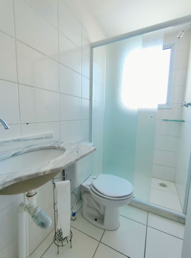 Na área íntima, o apartamento oferece dois dormitórios, sendo um deles uma suíte confortável. Os dois banheiros – o social e o da suíte – estão com box de vidro.