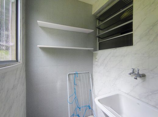A cozinha é equipada com armários planejados, garantindo praticidade no dia a dia e otimizando o uso do ambiente. Um banheiro bem distribuído atende a área íntima, com ventilação natural e bom acabamento. A lavanderia é funcional e separada da área social, proporcionando mais conforto na rotina doméstica, também com planejados.