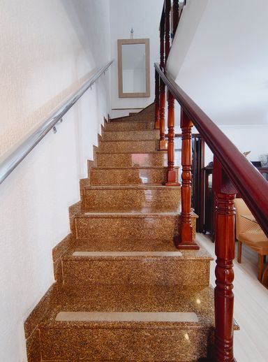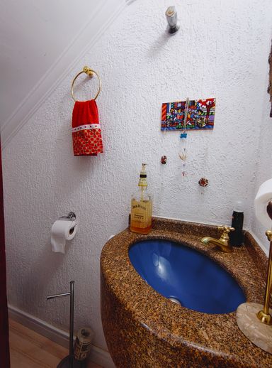 Ainda no piso térreo, há um lavabo, que atende com praticidade moradores e visitantes, trazendo mais conforto à área social da casa.