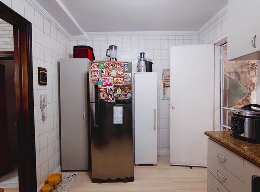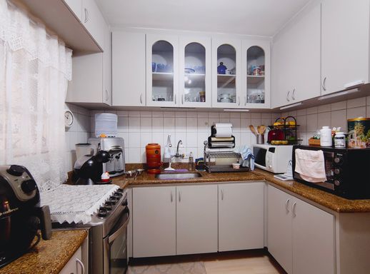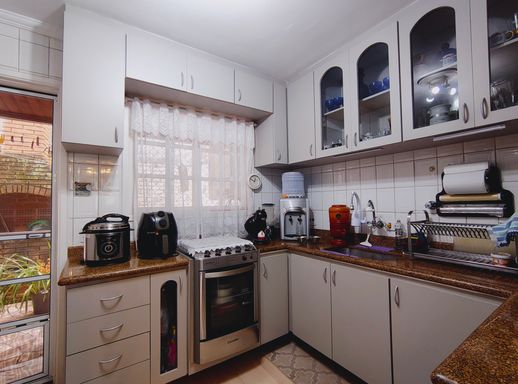 A cozinha é clara e bem ventilada, equipada com móveis planejados de qualidade, oferecendo organização e funcionalidade para o preparo das refeições.