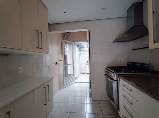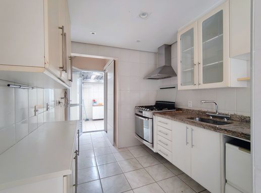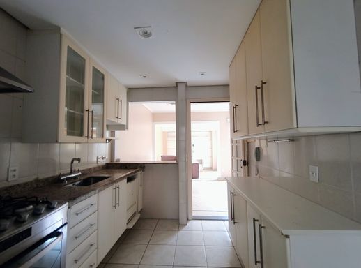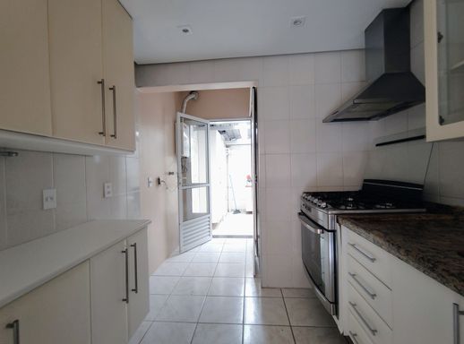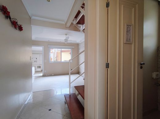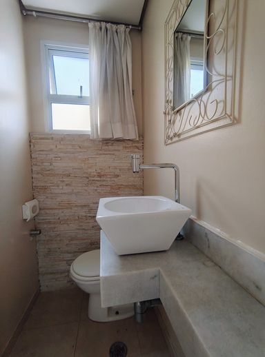A cozinha conta com armários planejados, oferecendo praticidade e organização no dia a dia, além de excelente aproveitamento de espaço. O imóvel dispõe ainda de lavabo, área de serviços com armários e sistema de aquecimento a gás, garantindo mais conforto e eficiência. A circulação interna é bem distribuída, com roupeiro no corredor que complementa a funcionalidade da planta.
