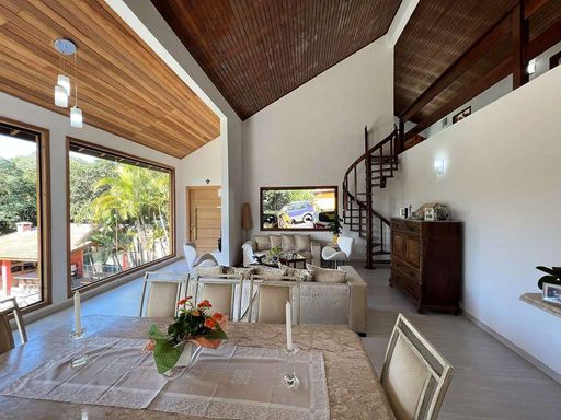 Esta linda casa térrea encanta pela luminosidade natural, excelente acabamento e integração perfeita com a natureza. Localizada na Fazendinha, um dos endereços mais icônicos da Granja Viana, está inserida em uma rua tranquila, arborizada e próxima à portaria, oferecendo segurança, privacidade e um estilo de vida único, cercado por muito verde.