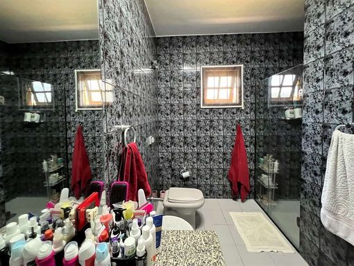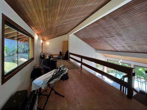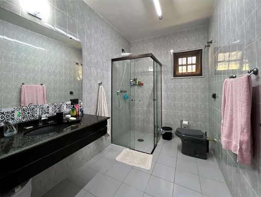A casa dispõe de copa cozinha com bancada, despensa, área de serviço ensolarada, lavanderia fechada, suíte de serviço, depósito, canil com uma baia, portão automático e garagem para seis veículos, sendo duas vagas cobertas. O imóvel está em fase de instalação de gerador de energia solar fotovoltaica, agregando economia e sustentabilidade.