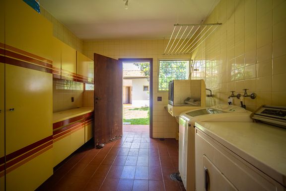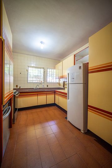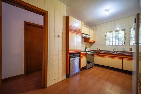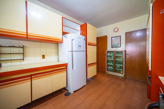 A cozinha americana integrada à copa e à copa-cozinha amplia a praticidade do dia a dia, complementada por despensa, área de serviço completa e dependência de funcionários. A casa dispõe ainda de adega, escritório, estar íntimo, jardim de inverno e diversos ambientes planejados para proporcionar versatilidade e conforto.