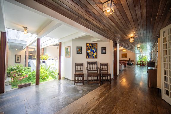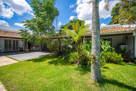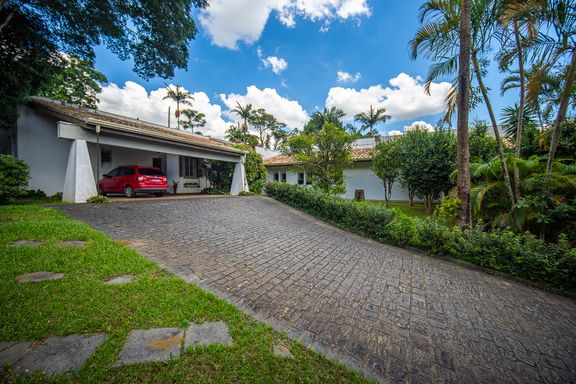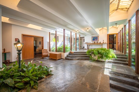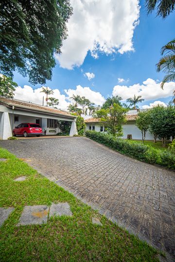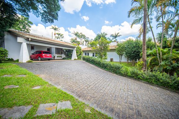 Implantada em um terreno plano com 3.172 m² de área total e 756 m² de área privativa construída, a casa térrea impressiona pela amplitude dos espaços e pela integração harmoniosa entre arquitetura e jardim. Logo na chegada, a entrada envidraçada revela um charmoso jardim interno banhado pelo sol da manhã, criando uma atmosfera acolhedora e convidativa. A distribuição inteligente da planta permite circulação fluida entre os ambientes, despertando a sensação de continuidade e conforto em cada espaço.