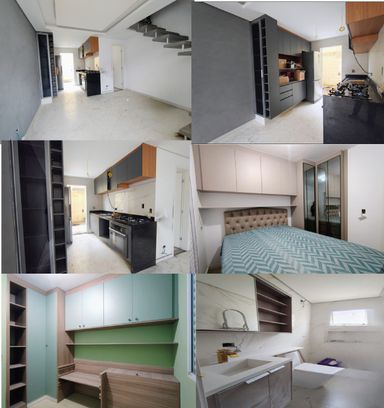 Ao entrar no sobrado, você é recebido por uma sala integrada à cozinha americana. Esse layout aberto permite uma boa interação entre os espaços, sendo ideal para quem gosta de cozinhar enquanto participa das atividades sociais da casa. O lavabo, localizado no piso inferior, atende tanto os moradores quanto os visitantes, garantindo praticidade no dia a dia.