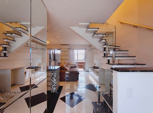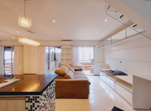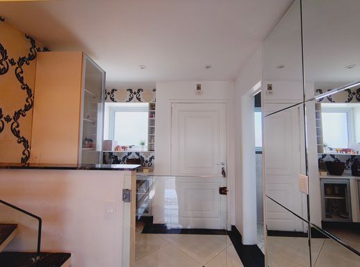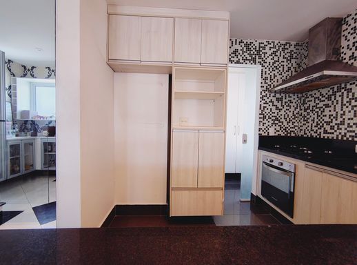 Logo na entrada, o imóvel conta com um hall elegante que abriga um escritório e um lavabo, perfeito para quem trabalha em home office ou precisa de um espaço reservado. A sala é integrada para dois ambientes, estar e jantar, oferecendo amplitude, sofisticação e excelente aproveitamento do espaço. A cozinha americana planejada, com armários de excelente qualidade e bancada em granito preto, une praticidade e estilo, além de se integrar harmoniosamente aos demais ambientes sociais.
