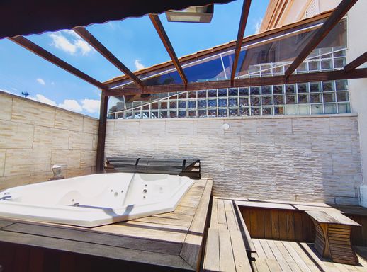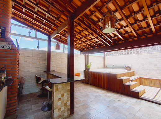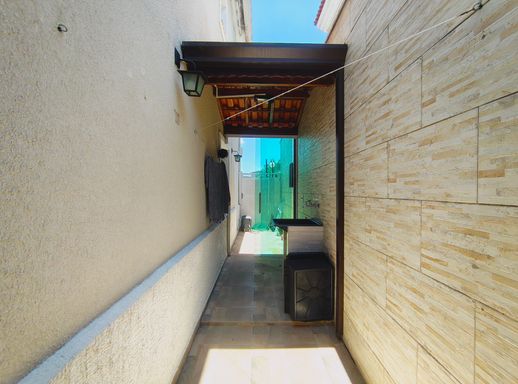 A área externa é um grande diferencial, com quintal equipado com churrasqueira e hidromassagem, criando um espaço perfeito para lazer, descanso e confraternizações. O corredor lateral com fechamento parcial onde fica hoje localizado a área de serviços, além de facilitar a circulação externa. A área de serviços interna da casa é funcional e pode ser facilmente transformada em despensa, conforme a necessidade do morador.