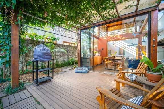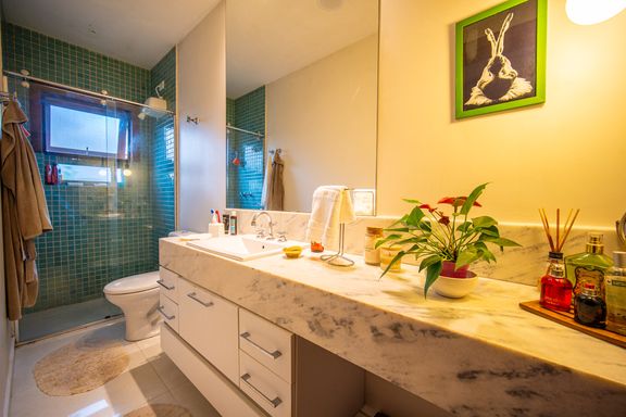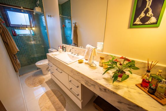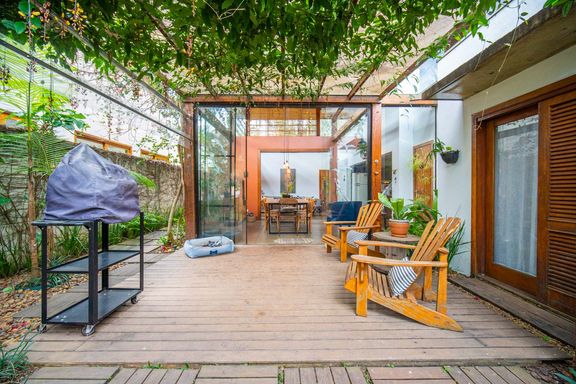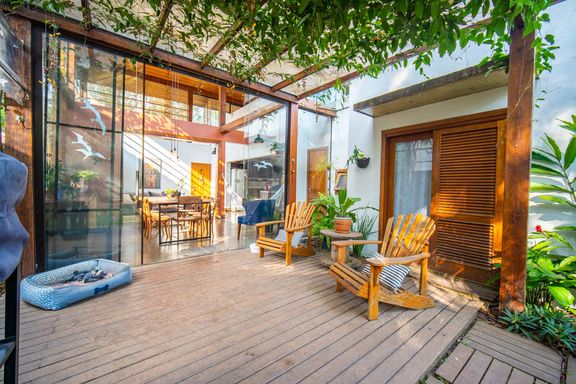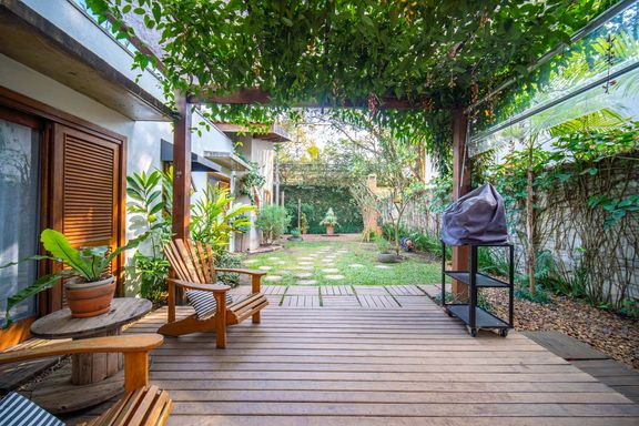 Na área externa, uma agradável varanda com deck se integra ao quintal gramado, criando um ambiente perfeito para momentos de lazer e descanso. O espaço conta ainda com churrasqueira e uma adega climatizada com capacidade para até 112 rótulos, um diferencial especial para apreciadores de vinhos e para quem gosta de receber amigos e familiares.