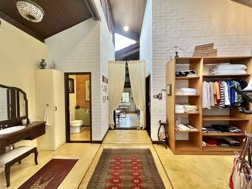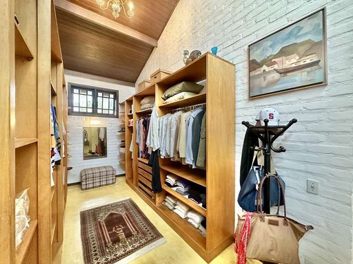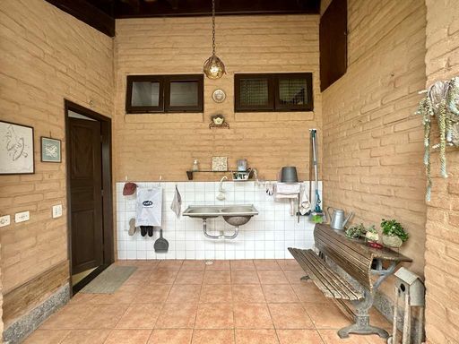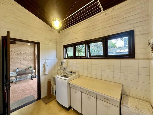 O paisagismo do jardim, renovado recentemente, é um espetáculo à parte, com castanheira portuguesa que atrai esquilos, ipês, manacás da serra e flamboyants, além de espaço planejado para futura piscina. A área de serviço é completa, com lavanderia fechada, espaço ensolarado com tanques externos e dependência de empregada com acesso independente. O imóvel conta ainda com portão automático, garagem para até cinco carros em pergolado coberto por trepadeira florida e acesso social e de serviço separados.
