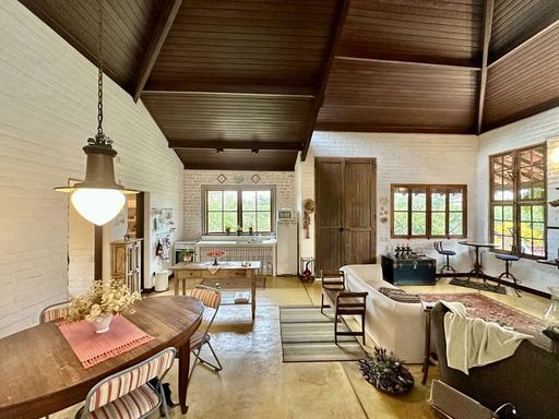 Um verdadeiro achado para quem busca exclusividade, estilo e contato direto com a natureza. Esta casa, localizada no condomínio Paisagem Renoir II e III, traduz o conceito “simple chic” em cada detalhe, unindo rusticidade, sofisticação e autenticidade. Vendida porteira fechada, mantém móveis, utensílios, tapetes e grande parte da decoração, oferecendo não apenas um imóvel, mas um estilo de vida pronto para ser vivido. O projeto valoriza o conceito “menos é mais”, com ambientes integrados, materiais nobres e escolhas arquitetônicas que carregam história e personalidade, como portas e janelas originais das Docas de Santos, pisos em cimento queimado rústico, pastilhas de vidro e telhas especiais que conferem charme único ao telhado.