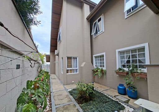 Elegância, estilo e privacidade definem esta charmosa casa de estilo clássico contemporâneo na Granja Viana, localizada em condomínio de alto padrão com muito verde e um belo gramado.