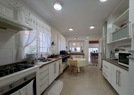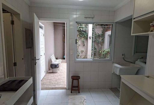 A cozinha é funcional, com área de copa e armários planejados, além de lavanderia também planejada, despensa e banheiro de serviço.