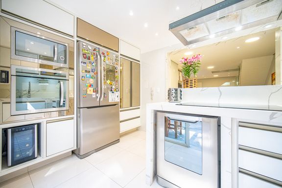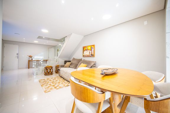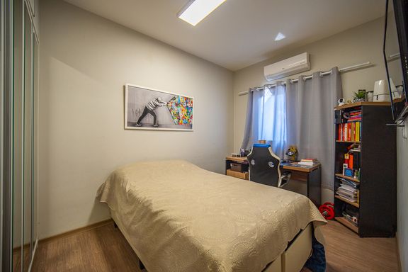 Com três dormitórios, sendo uma suíte com sacada, a casa foi totalmente automatizada para proporcionar uma experiência contemporânea de moradia. Os ambientes íntimos contam com ar-condicionado e móveis planejados de excelente qualidade, otimizando o espaço e mantendo o padrão elevado de acabamento. A suíte oferece conforto superior, enquanto os demais quartos são ideais tanto para uso pessoal quanto para home office ou quarto de hóspedes.
