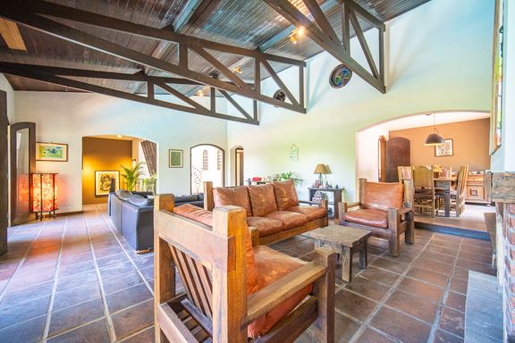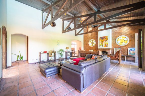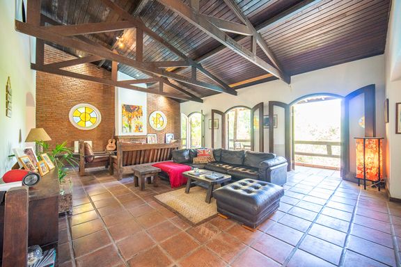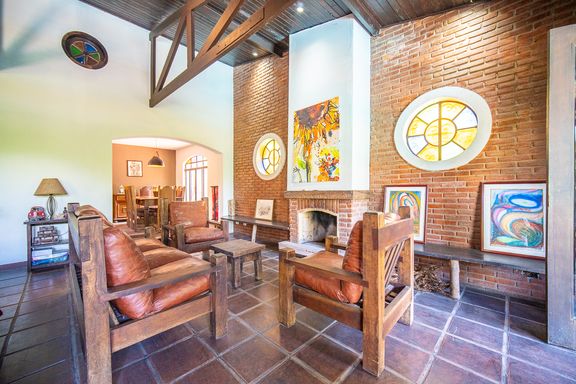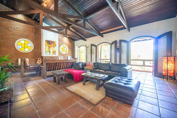 O imóvel está posicionado em uma microrregião privilegiada, cercada por áreas verdes preservadas, onde a vista permanente é totalmente voltada para o verde e a sensação de privacidade é absoluta. A área social conta com uma sala ampla, integrada e acolhedora, ideal para diferentes ambientes de convivência, com destaque para a lareira, que proporciona conforto nos dias mais frios e integração com a área externa nos momentos de lazer.