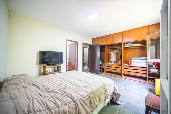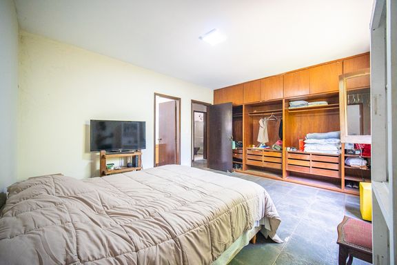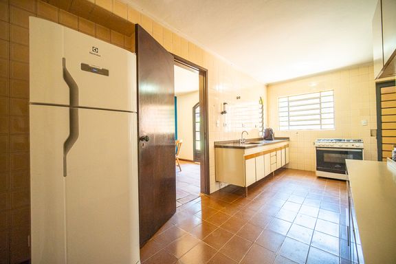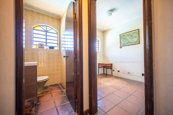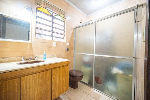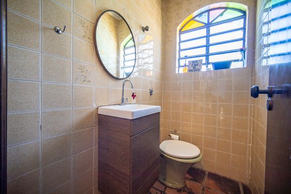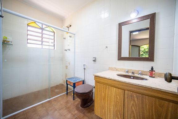 Na área íntima, a casa dispõe de quatro quartos bem distribuídos, sendo duas suítes, garantindo conforto e privacidade para toda a família. Os banheiros atendem perfeitamente à configuração do imóvel e oferecem excelente potencial para modernização, acompanhando um projeto de retrofit que pode valorizar ainda mais os espaços.