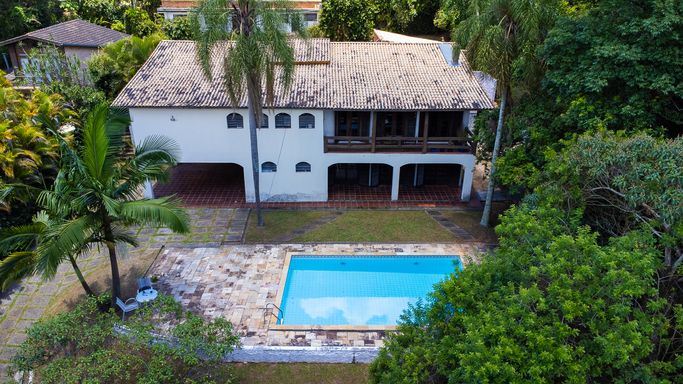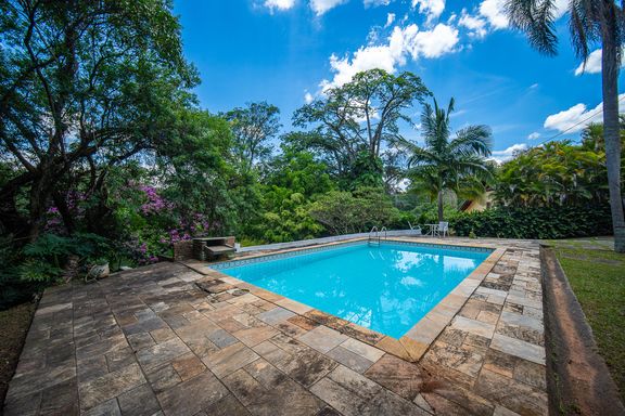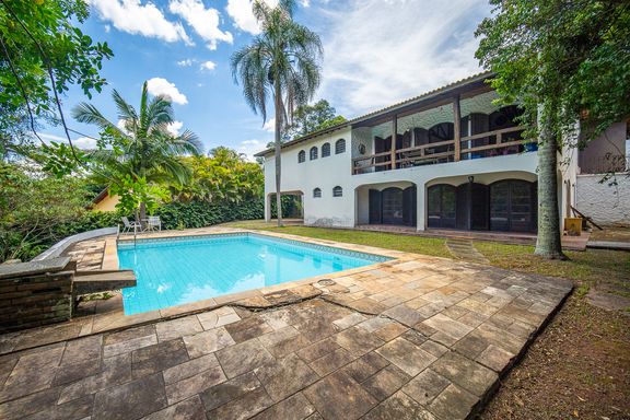 A área externa é um convite ao lazer e ao descanso, com piscina, churrasqueira e amplos espaços de convivência totalmente integrados à natureza ao redor, criando um cenário único. Tanto na área social quanto em toda a área construída, a implantação da casa foi pensada para que 100% da vista esteja voltada para o verde, reforçando a sensação de bem-estar, exclusividade e conexão com a natureza.
