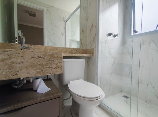 Inclui banheiros, lavabos, suítes e demi-suítes