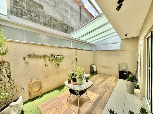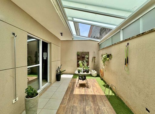 O quintal privativo é um dos destaques do imóvel, contando com teto retrátil que permite o uso em diferentes condições climáticas. Além disso, possui acesso pelo corredor lateral, oferecendo mais praticidade e circulação independente.