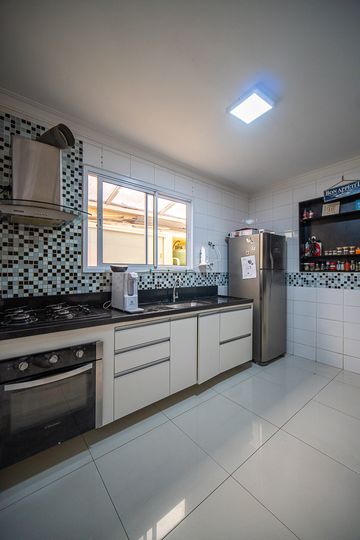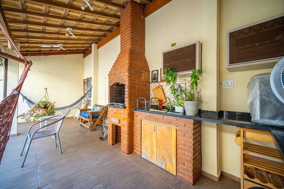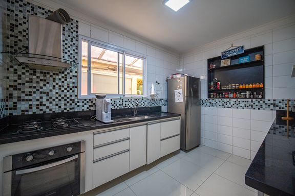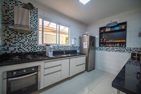A cozinha é prática e funcional, equipada com armários planejados e integrada à área externa. No quintal, um espaço gourmet completo com churrasqueira convida a momentos especiais com amigos e familiares. A casa ainda dispõe de uma saleta versátil, que pode ser facilmente adaptada como escritório, brinquedoteca, sala de jogos ou até um quarto adicional, conforme a necessidade.