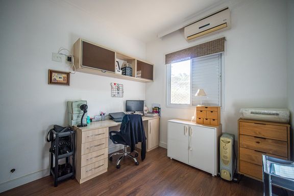 Para maior conforto, o imóvel está equipado com ar-condicionado quente e frio, cooktop, forno embutido, depurador em inox, aquecedor e pressurizador. A garagem oferece duas vagas cobertas, com acesso fácil e seguro.