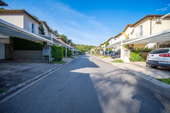 O condomínio é horizontal, com casas semi geminadas, e oferece portaria 24 horas, controle de acesso, interfone e sistema de monitoramento, garantindo tranquilidade para toda a família. A área de lazer conta com salão de festas, churrasqueira e playground, ideal para o convívio e a diversão das crianças.