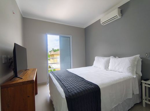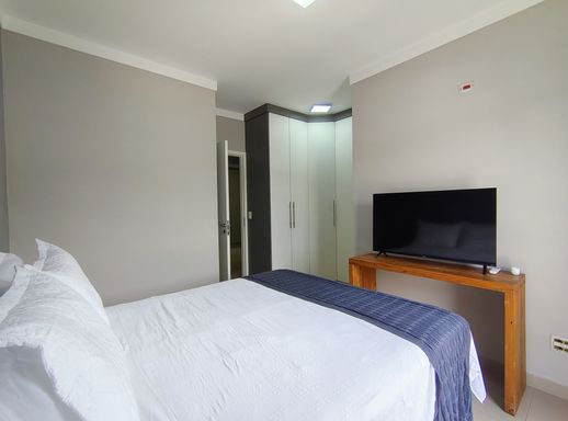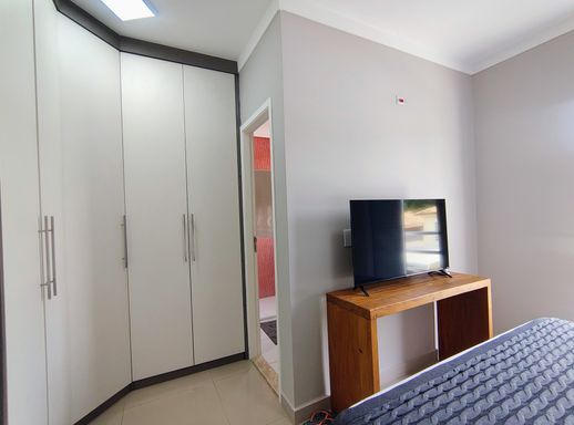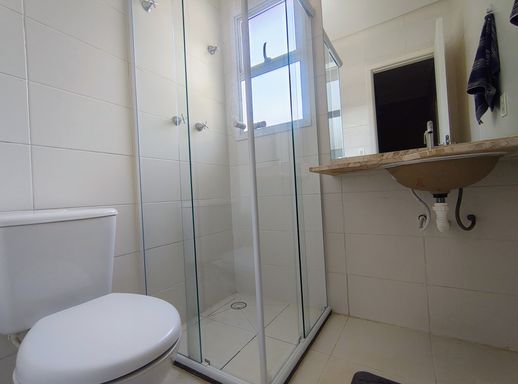 O imóvel dispõe de três dormitórios, sendo uma suíte confortável e bem iluminada, com armários planejados e ar-condicionado. Os demais dormitórios também contam com ótimos armários planejados. Os banheiros possuem acabamentos modernos e box instalados, unindo funcionalidade e bom gosto.