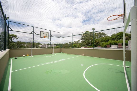 O condomínio é completo e ideal para quem busca qualidade de vida. Conta com segurança 24 horas, academia equipada, quadra poliesportiva, salão de festas e churrasqueira, oferecendo diversas opções de lazer e convivência.
