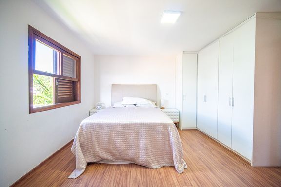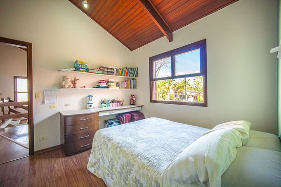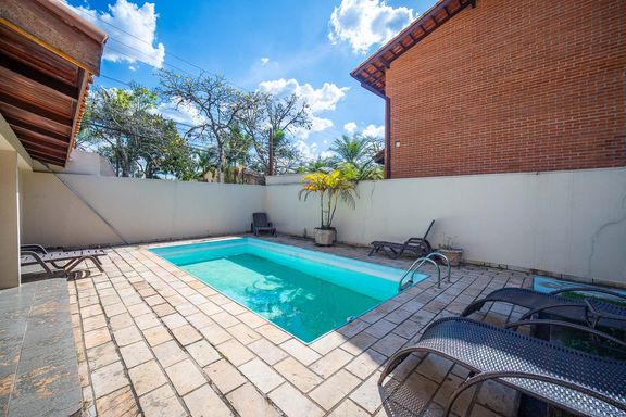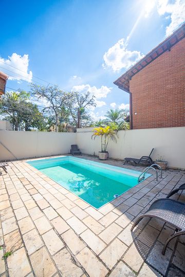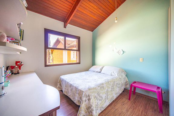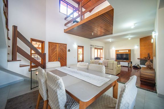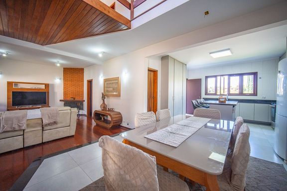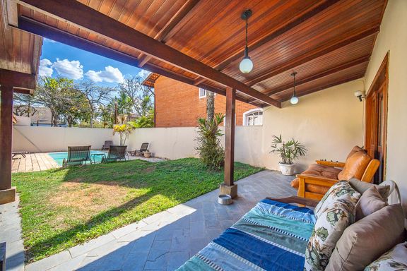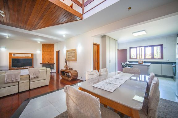A área externa é um destaque à parte, com piscina privativa e lareira, perfeitas para desfrutar de momentos de lazer e descanso em meio à natureza. O condomínio proporciona toda a infraestrutura necessária para o bem-estar da família, com portaria 24 horas, piscina aquecida, quadras esportivas e áreas de convivência.