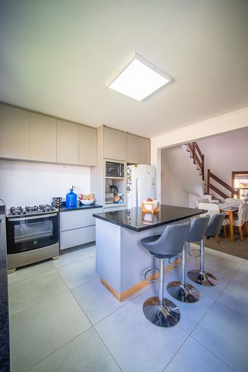 A residência conta com três dormitórios, sendo uma suíte espaçosa, que proporciona privacidade e aconchego. Os banheiros têm acabamento de excelente qualidade, unindo sofisticação e funcionalidade. As duas salas amplas, perfeitas para estar e jantar, são integradas e bem iluminadas, criando uma atmosfera acolhedora. A cozinha com copa e armários planejados oferece praticidade e ótimo aproveitamento do espaço, enquanto o escritório garante um ambiente confortável para o home office.