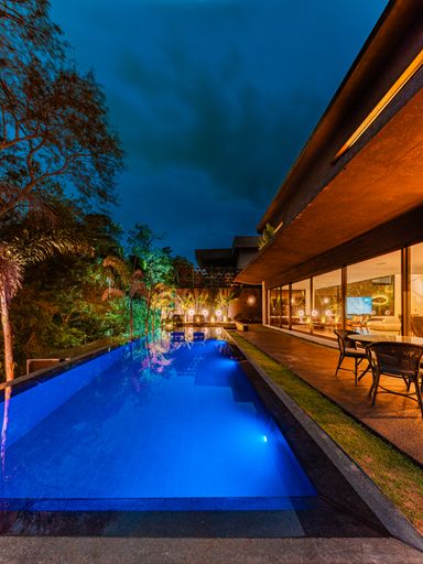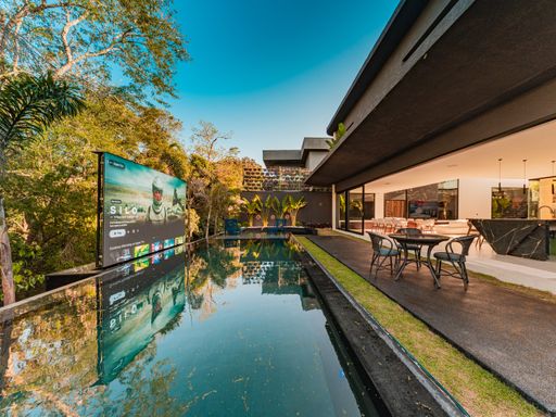 A área externa é um dos grandes destaques desta casa à venda no Vintage Arte de Morar. A piscina revestida, com prainha e vista permanente para a reserva, oferece um cenário perfeito para lazer e descanso. O espaço conta ainda com fire place, criando um ambiente aconchegante para encontros ao ar livre, além de telão de LED, que transforma o espaço em uma verdadeira área de entretenimento.