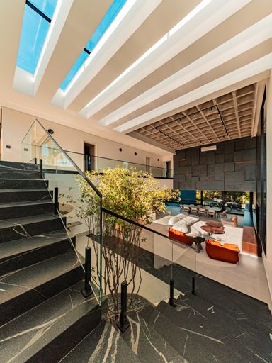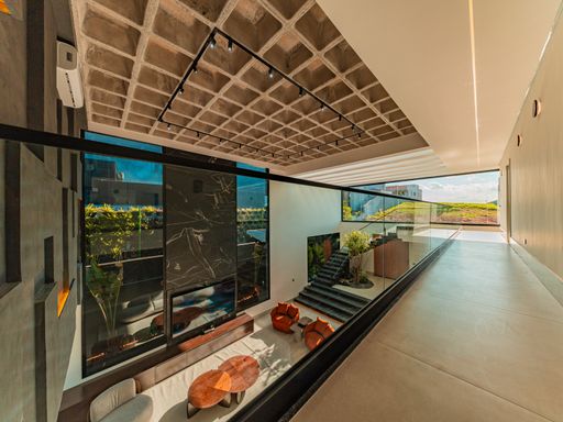 Implantada em um terreno de 502 m², com 360 m² de área construída, a casa impressiona desde a entrada, que conta com um elegante hall integrado à natureza, valorizado por uma jabuticabeira que reforça o conceito de viver bem e em harmonia com o verde. Os ambientes internos foram cuidadosamente planejados, com acabamentos de alto padrão e mobília solta de primeira linha, oferecendo conforto, funcionalidade e sofisticação em cada detalhe.