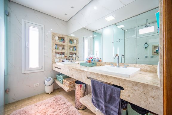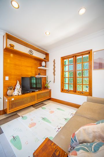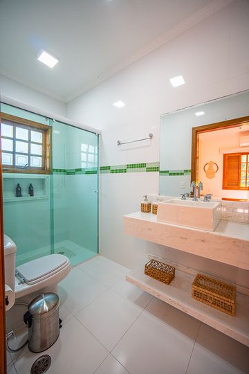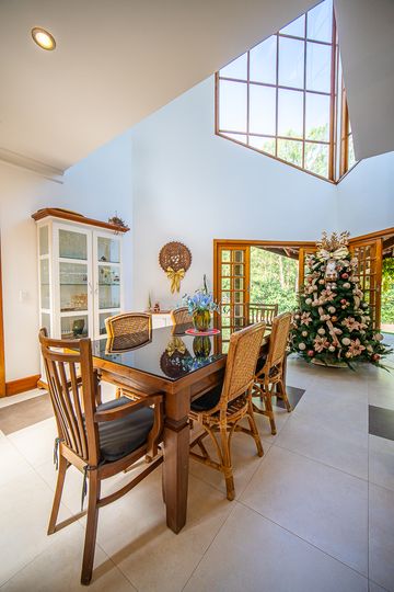 O imóvel possui três dormitórios, todos suítes, com banheiros bem distribuídos que oferecem conforto e funcionalidade para toda a família. Os ambientes são amplos e bem planejados, permitindo integração harmoniosa entre as áreas internas e externas, o que favorece a circulação, a ventilação natural e a sensação de amplitude em todos os espaços da casa.