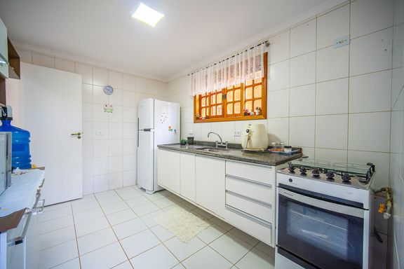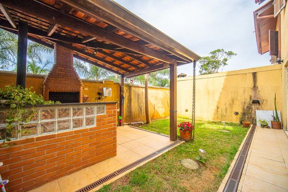 Este lindo sobrado em condomínio fechado na Granja Viana é ideal para quem busca conforto, praticidade e uma localização privilegiada. O living amplo acomoda dois ambientes integrados, sala de estar e sala de lareira, criando um espaço acolhedor para receber e relaxar. A sala de jantar se conecta ao quintal com área de churrasqueira, perfeita para momentos de lazer em família. A cozinha, moderna e funcional, é repleta de armários planejados e conta com área de serviço ao lado, garantindo praticidade no dia a dia.