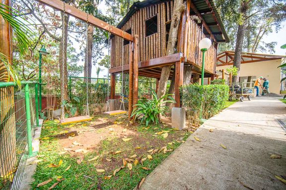 O condomínio traz a tranquilidade de um projeto diferenciado, cercado de verde e muito bem localizado. A estrutura de lazer inclui piscina adulto e infantil, salão de festas, quadra esportiva, churrasqueira, playground e portaria 24 horas com monitoramento. Além disso, conta com portaria virtual e zelador em horário comercial.
