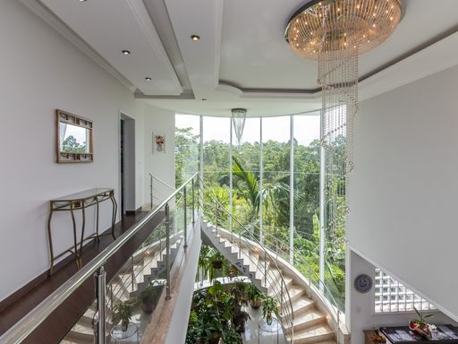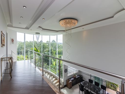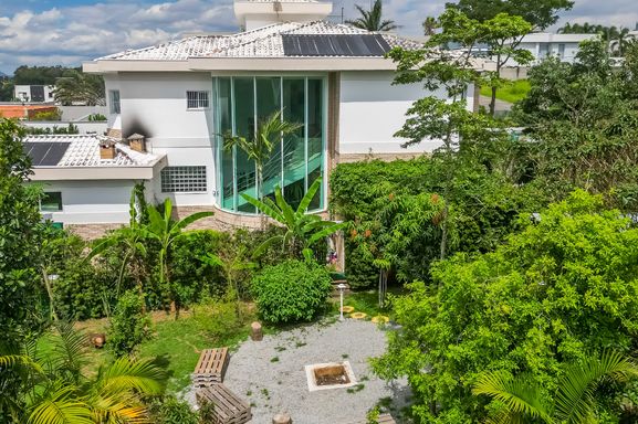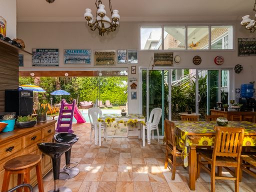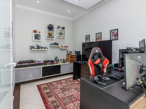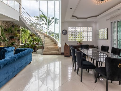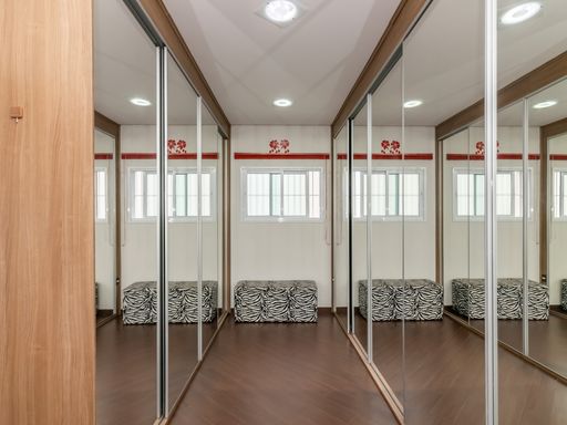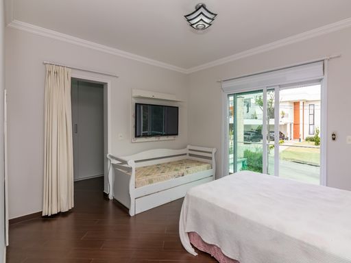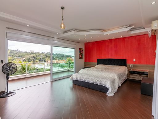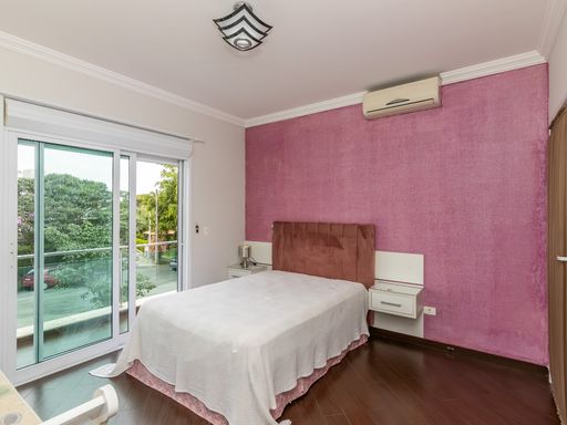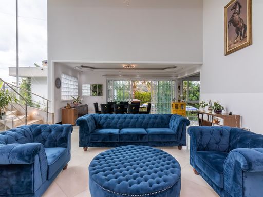 São 3 suítes espaçosas, além de 6 banheiros, oferecendo total conforto para a família e convidados. As áreas sociais são um verdadeiro destaque: sala de estar com pé-direito duplo, sala de lareira, sala de TV e sala de jantar, todas pensadas para proporcionar bem-estar e convivência em um ambiente elegante e acolhedor.