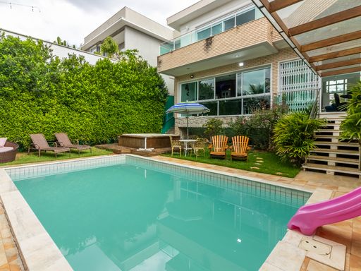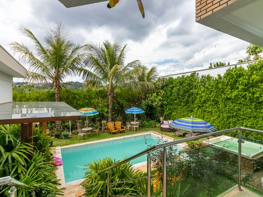 Na área externa, um verdadeiro refúgio particular: piscina, jacuzzi e um elegante deck, perfeitos para momentos de lazer. O espaço gourmet completo, com churrasqueira, fogão à lenha e forno de pizza, é ideal para receber amigos e familiares em grandes encontros.