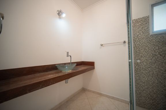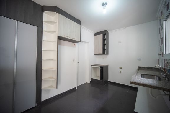 A cozinha é funcional e equipada com armários planejados e uma ampla despensa, garantindo organização no dia a dia. A área de serviço é reservada e o imóvel ainda dispõe de dependência de empregada com suíte, oferecendo versatilidade ao espaço.